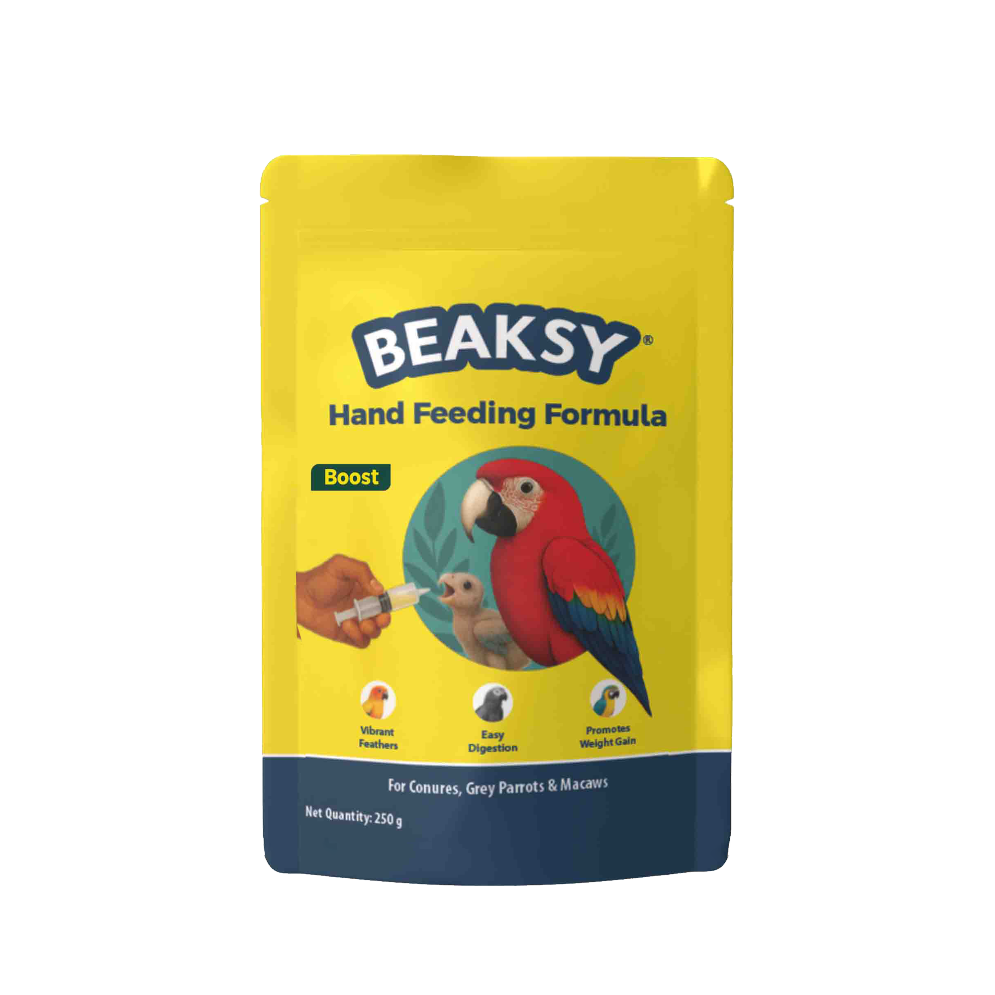 Beaksy Boost hand feeding formula is a nutrient-dense blend tailored to meet the advanced growth needs of high-energy-requiring baby birds. Ease of mixing and appealing taste makes feeding effortless. A perfect solution for pet owners, bird enthusiasts, and breeders seeking reliable everyday care.