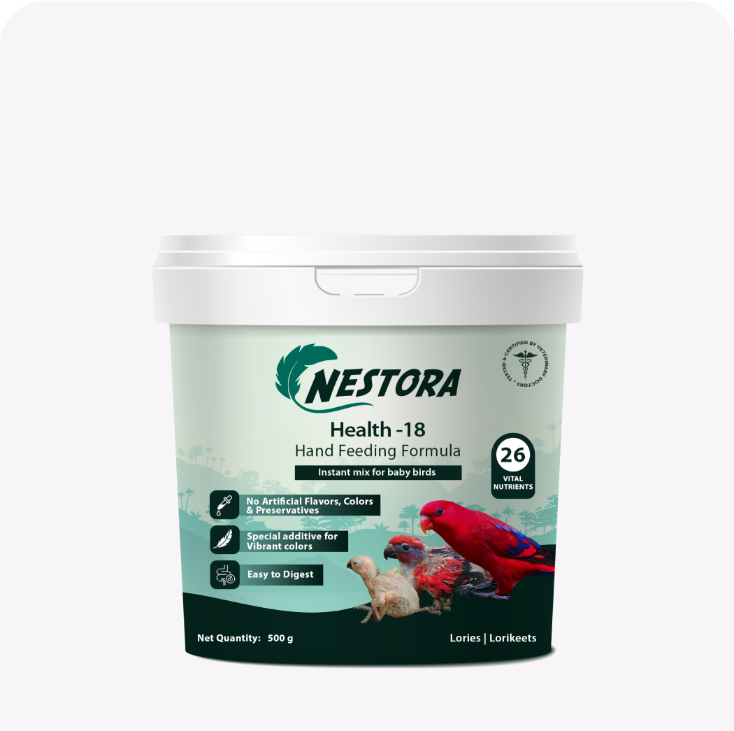 Health-18 is a carefully formulated hand feeding formula with hand-picked ingredients to provide the essential nutrients found in wild nectar to meet the vital growth needs of nectar-feeding baby birds like Lories & Lorikeets.